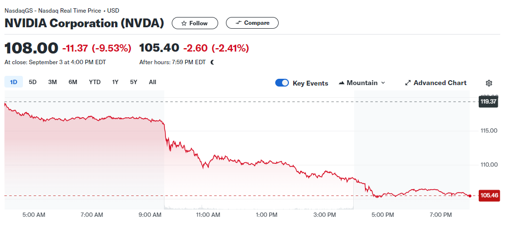 Акции Nvidia зафиксировали крупнейшее в истории однодневное падение на фоне расследования со стороны Минюста США нарушений антимонопольного законодательства.