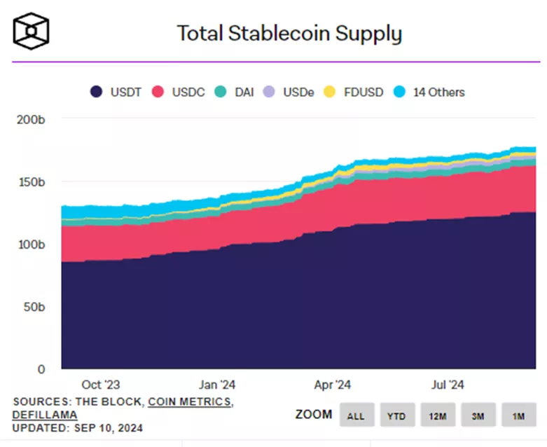По состоянию на 9 сентября, совокупный объем предложения Tether составляет $125,01 млрд. Доля токена в секторе оценивается в 70,7%.