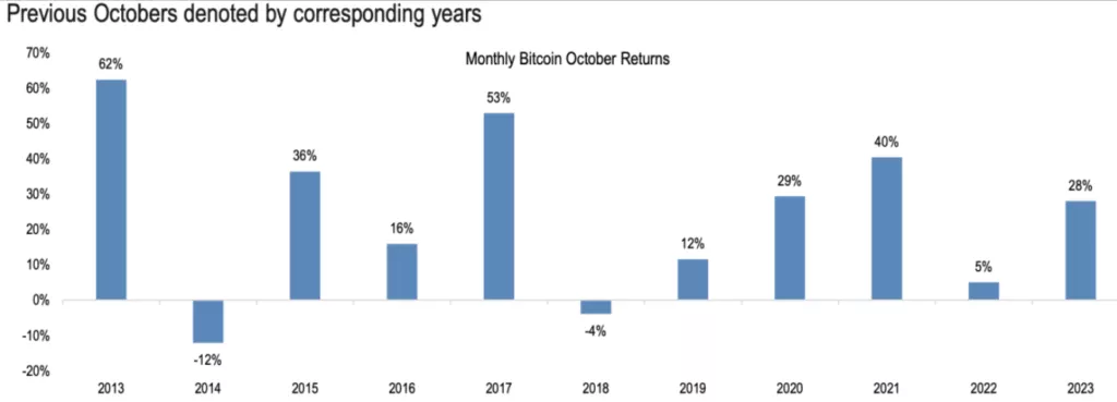 «Хотя предыдущие результаты не гарантируют будущие, мы считаем, что популяризация термина “Uptober” может повлиять на поведение [инвесторов] и обеспечить биткоину успешный месяц», — написали аналитики.