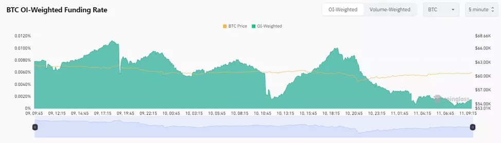 Ставка финансирования бессрочных контрактов упала до 0,0015% против 0,006–0,01% до публикации макростатистики.