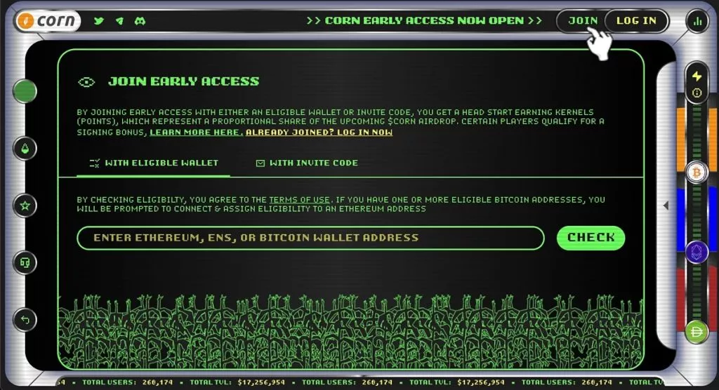 В случае несоответствия требованиям необходимо зарегистрироваться по реферальному коду. Его можно получить от друзей, уже присоединившихся к Corn, либо найти в официальных каналах проекта на Discord, Telegram и X.