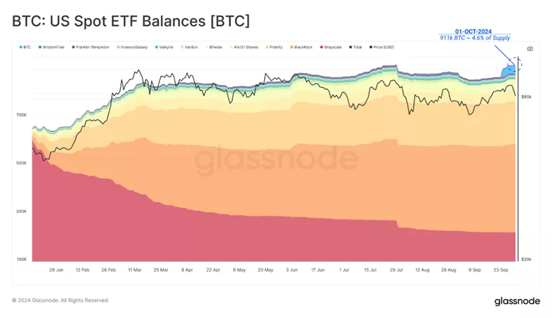 По оценкам специалистов, эмитенты спотовых биткоин-ETF выкупили 911 000 BTC — 4,6% доступного предложения цифрового золота.