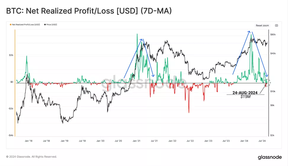 Суточный показатель чистой реализованной прибыли опустился до $15 млн, что резко контрастирует с $3,6 млрд в момент обновления ATH в марте.