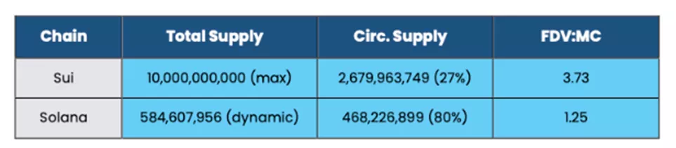Серьезным препятствием для Sui выступает токеномика. Мейннет запустили в мае 2023 года, когда токеномика с низким уровнем доступного предложения и высокой FDV «была повсеместной».