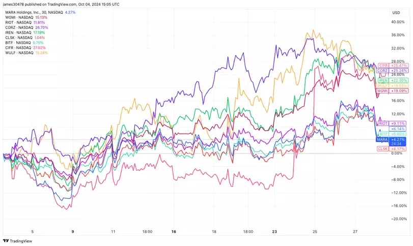 Так, свои позиции по числу добытых монет улучшили MARA Holdings (MARA), Riot Platforms (RIOT) и CleanSpark (CLSK).