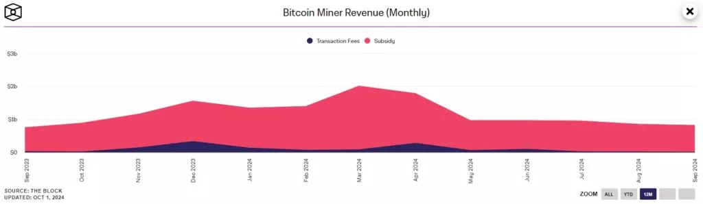 В сентябре майнеры первой криптовалюты получили совокупный доход в размере $815,7 млн. Это самый низкий показатель с начала года, согласно данным The Block.