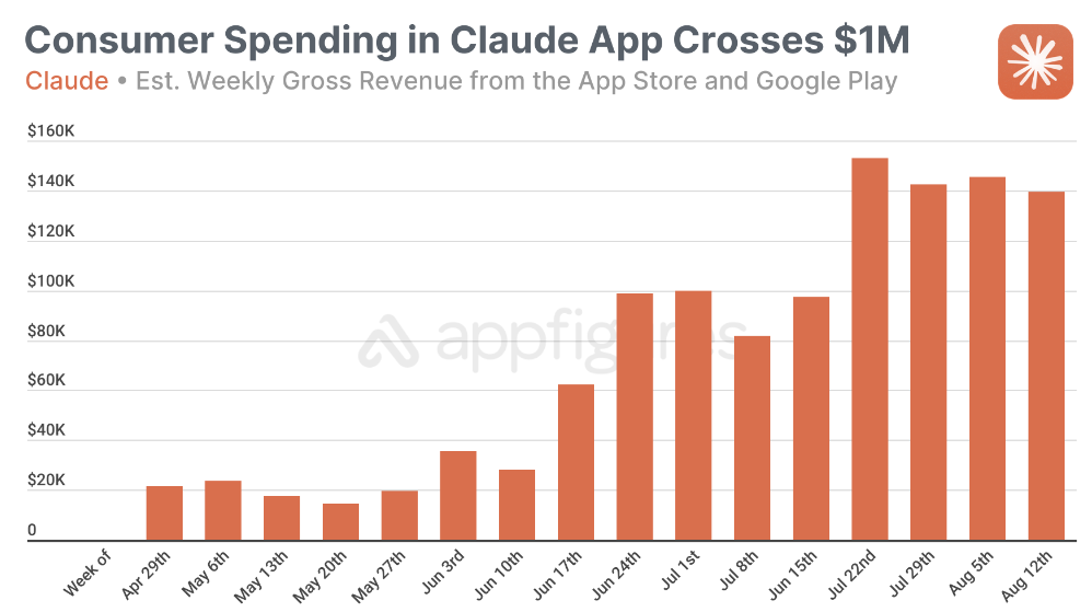 Мобильное ИИ-приложение Claude от Anthropic принесло более $1 млн выручки спустя 16 недель после запуска. Об этом пишет Techcrunch со ссылкой на данные Appfigures.