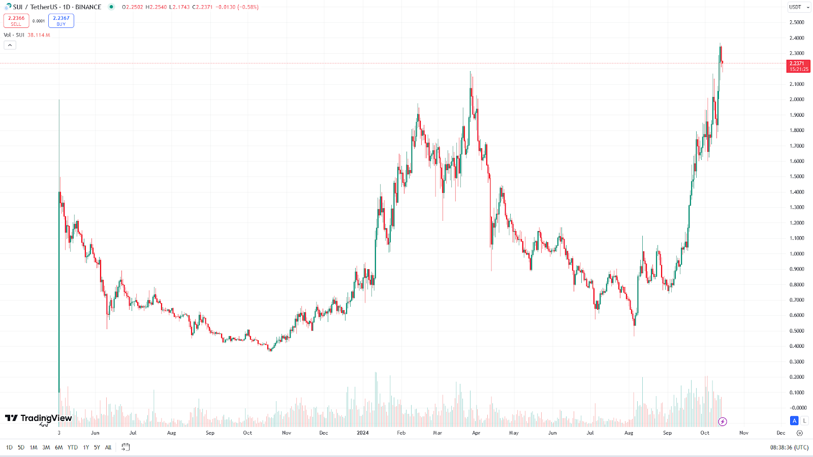 С 5 августа SUI вырос на 400%, на днях обновив исторический максимум.