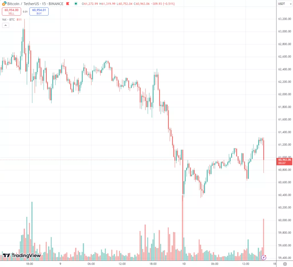 Инфляция в США превысила ожидания. Биткоин опустился ниже $61 000