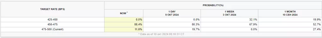 Рынок свопов оценивает вероятность снижения ставки ФРС на 25 б. п. в ноябре в 85% по сравнению с 80% в начале недели. Динамика отражает влияние данных по заявкам на получение пособий по безработице.