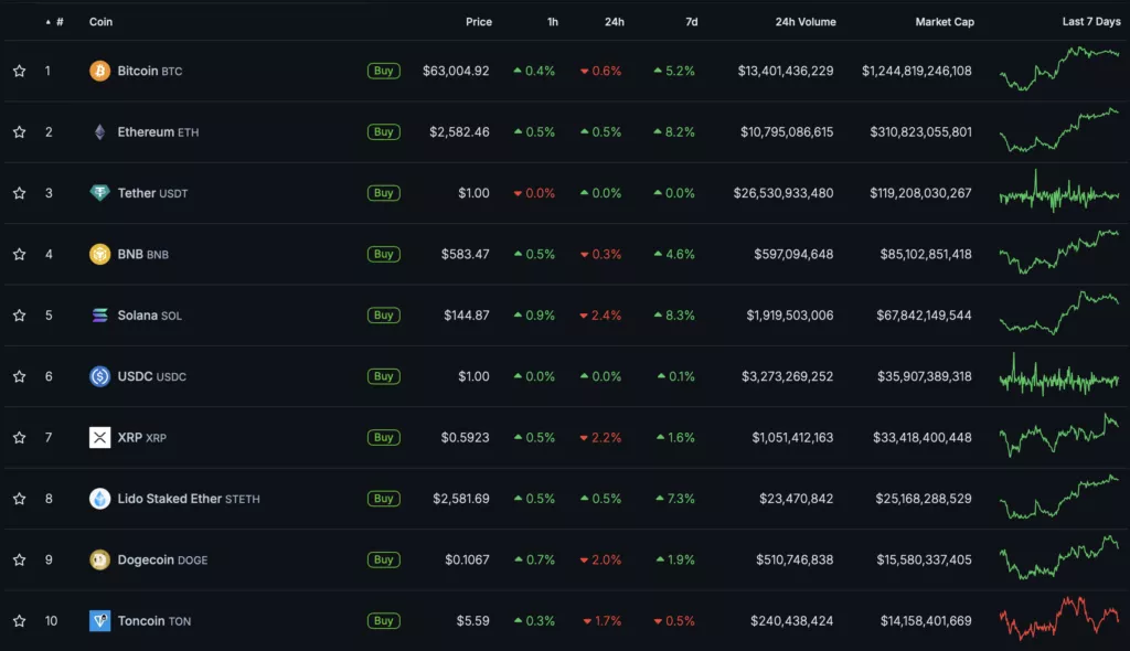 Большинство цифровых активов из топ-10 по капитализации завершили неделю в «зеленой зоне». Исключением стал Toncoin (-0,5%).