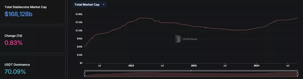 Капитализация стейблкоинов выросла до рекордных $168 млрд