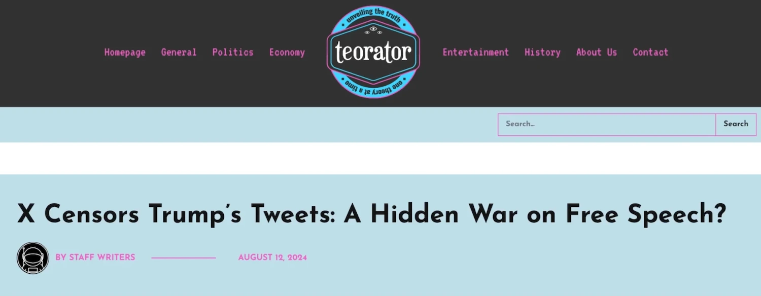 Сеть Storm-2035 имитировала новостные агентства и распространяла провокационные материалы на острые темы с целью «посеять инакомыслие и конфликт». На одном из подобных ресурсов утверждалось, что соцсеть X якобы цензурирует твиты Дональда Трампа.