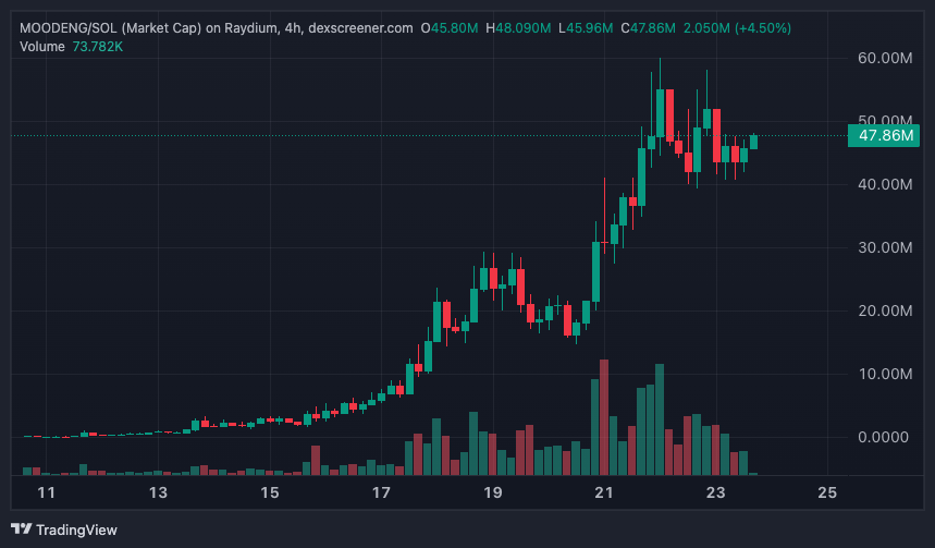 Две недели назад неизвестный пользователь вложил 6 SOL (~$800 на момент покупки) в мем-токен Moo Deng (MOODENG), а сейчас его нереализованная прибыль оценивается в ~$1,3 млн.