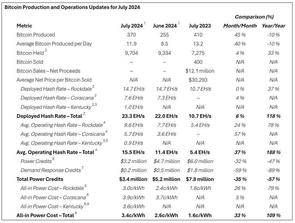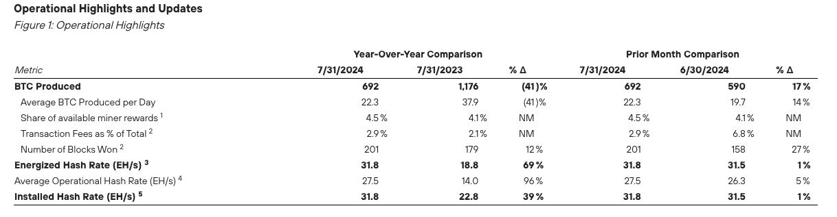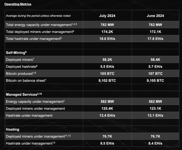 В июле компания подключила к сети около 5000 новых устройств, а также вывела из парка и переместила примерно 10 000 машин. Текущий флот включает ~245 000 майнеров.