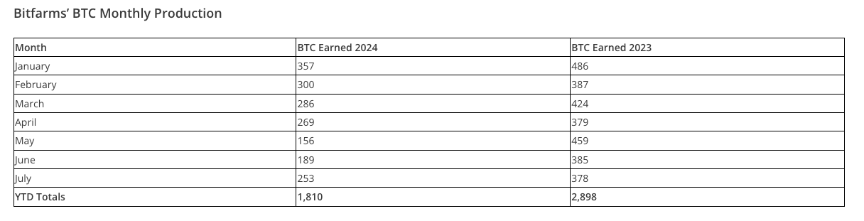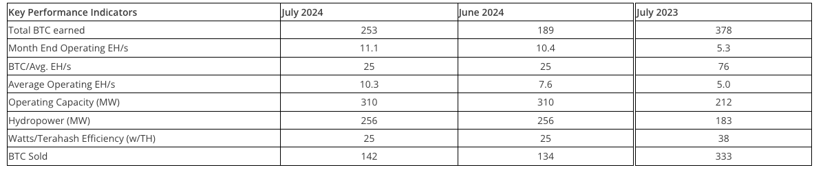 За июль Bitfarms добыла 253 BTC по сравнению с 189 BTC в июне (+34%). На конец месяца хешрейт составил 11,1 EH/s.
