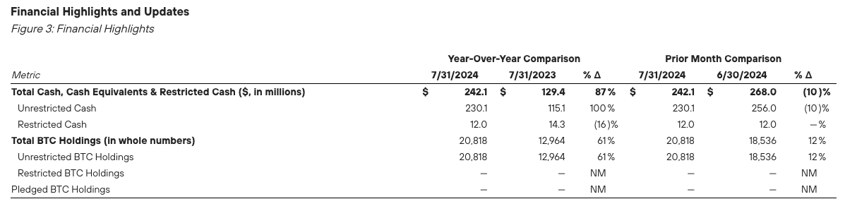 По состоянию на 31 июля 2024 года на балансе MARA находилось 20 818 BTC. Фирма решила не продавать биткоины, напомнив, что приняла подход удержания актива в резервах.