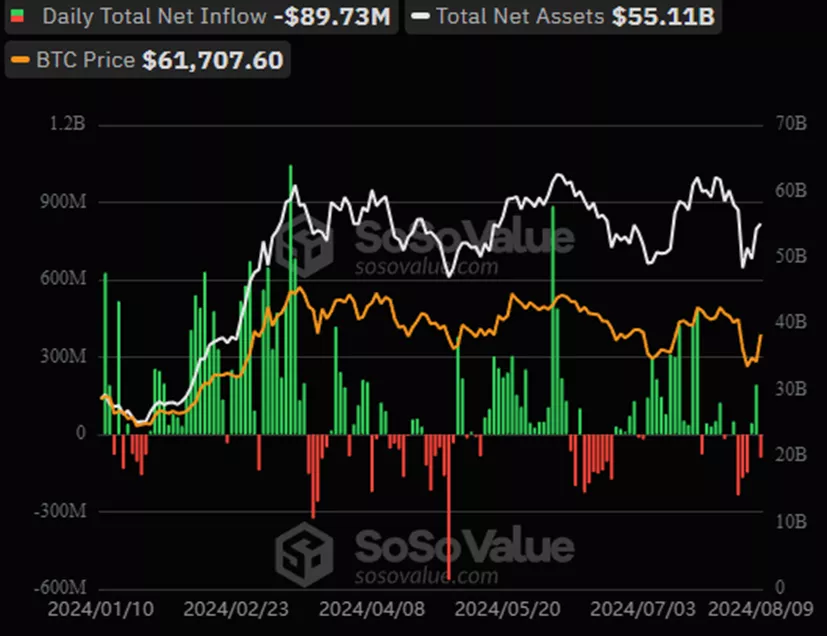 Поступления с 5 по 9 августа в спотовые Ethereum-ETF составили $104,8 млн, согласно SoSoValue. Впервые с момента одобрения инструментов динамика стала положительной.
