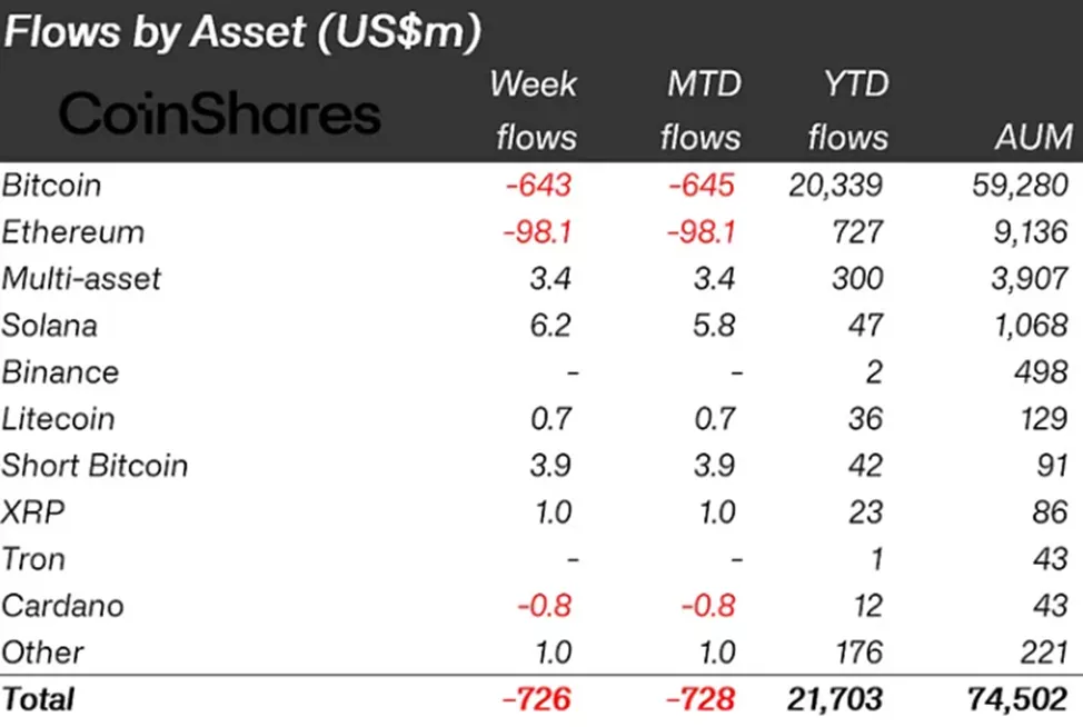 Из связанных с биткоином инструментов клиенты вывели $643 млн после $319 млн неделей ранее.