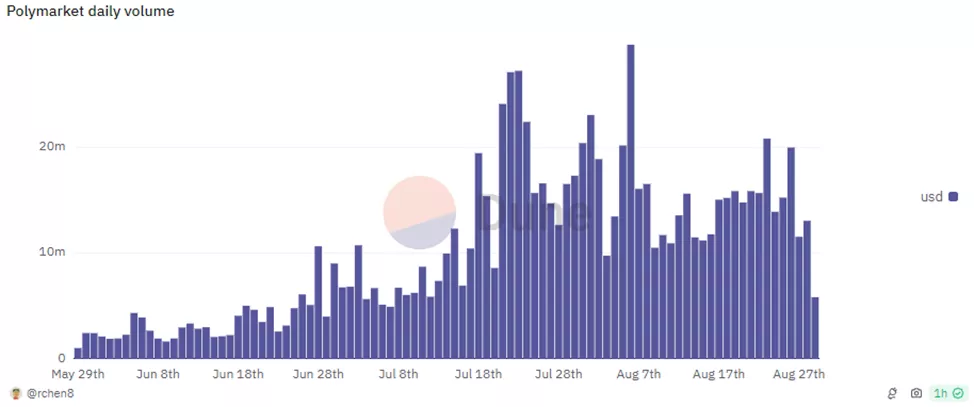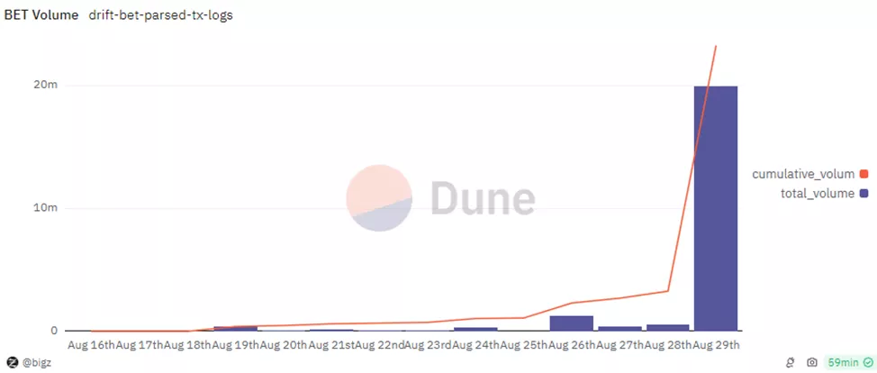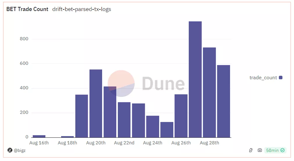 29 августа суточный объем ставок на платформе предсказаний BET на блокчейне Solana составил $23,3 млн. Такие данные приводит Dune Analytics.