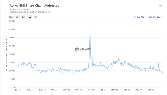 Общее количество уникальных кошельков в сети BSC выросло на 30,4% за последние 12 месяцев и превысило 458 млн. Блокчейн обрабатывал в среднем 4 млн транзакций в день, opBNB — 4,8 млн.