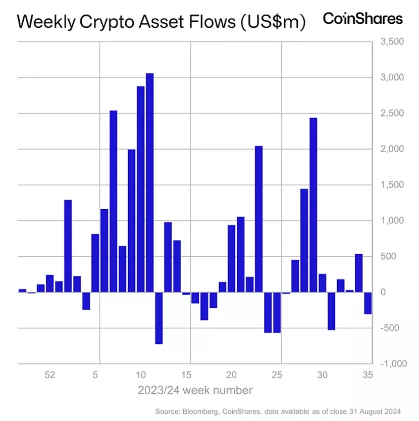 Отток из криптовалютных инвестфондов с 25 по 31 августа составили $305 млн после притока $543 млн неделей ранее. Такие данные привели в CoinShares.