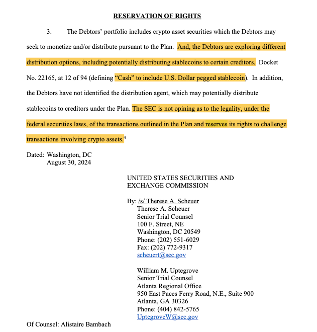 SEC также указала, что в текущем плане погашения не назначен агент, ответственный за распределение средств среди кредиторов.