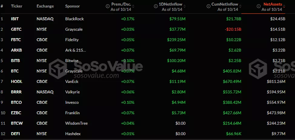 Лидерами стали FBTC от Fidelity ($239,3 млн) и BITB от Bitwise ($100 млн).