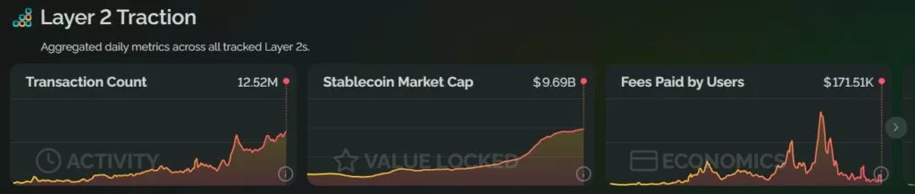 Эксперты Growthepie также отметили, что рыночное предложение стейблкоинов в L2-экосистеме Ethereum превзошло показатели Solana и BNB Chain вместе взятых, достигнув $9,69 млрд.