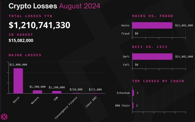 В августе потери криптопроектов оказались связаны исключительно со взломами.