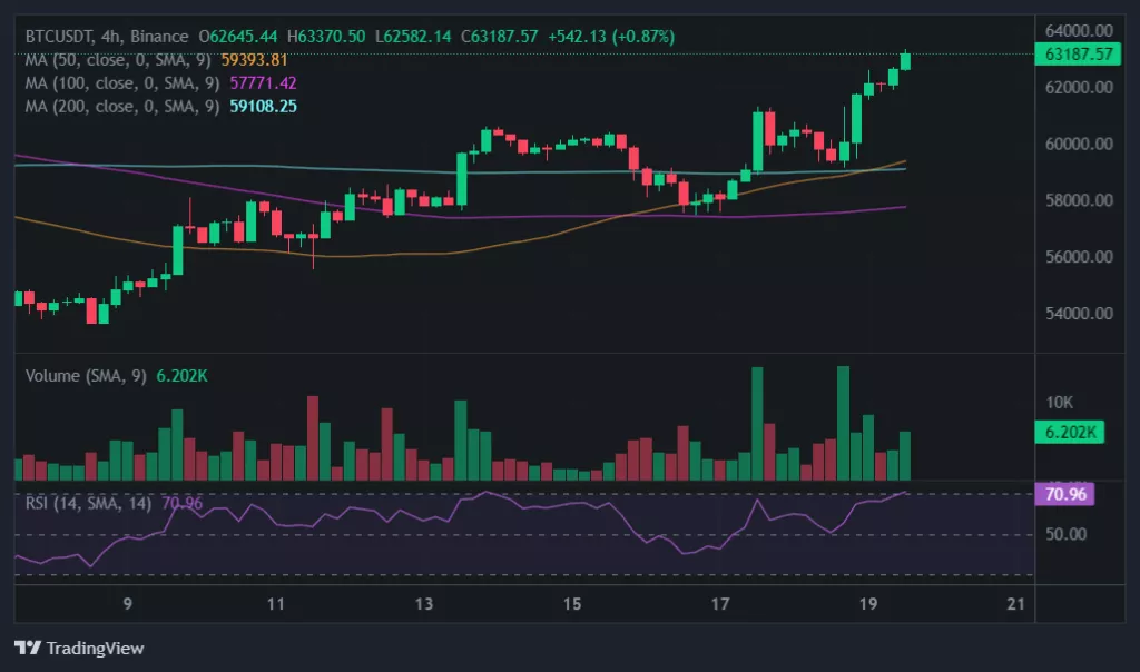 Первая криптовалюта продолжила рост, преодолев отметку в $63 000.