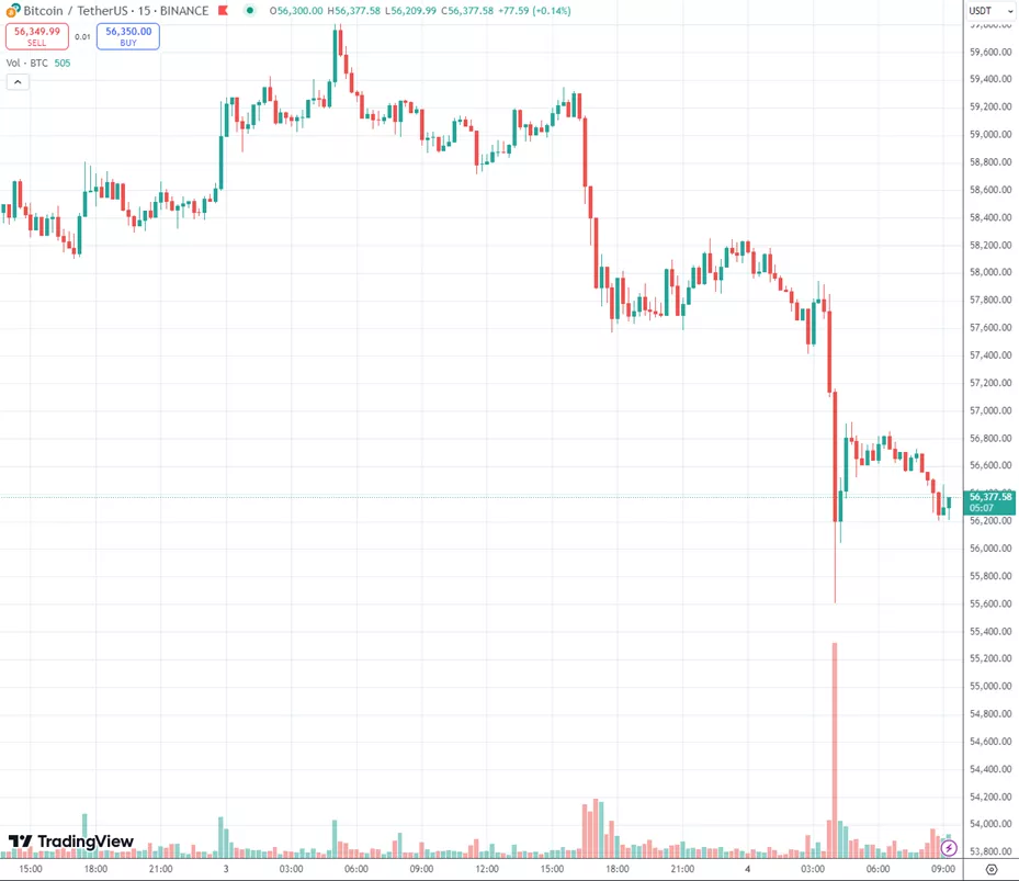 В ночь на среду, 4 сентября, котировки первой криптовалюты упали до минимума за четыре недели в $56 000.