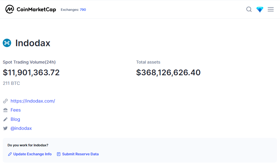 Согласно данным CoinMarketCap, общий объем активов Indodax составляет $368 млн.