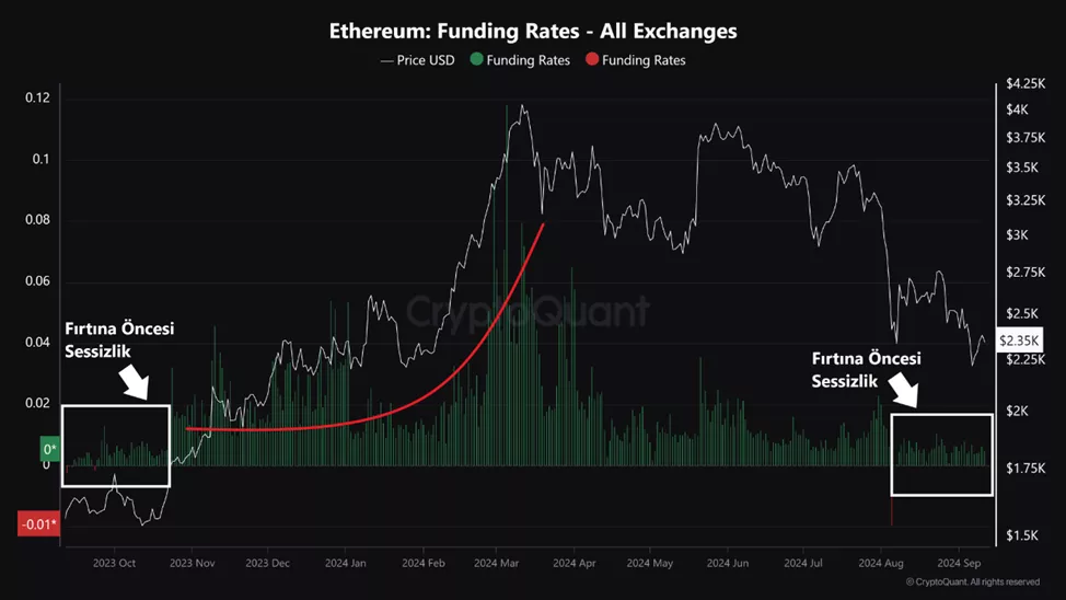 Текущая ставка финансирования Ethereum в ~0,0056% сопоставима с тем, что наблюдалось в сентябре 2023 года перед последовательным ростом индикатора к отметкам выше 0,015%, указали эксперты.