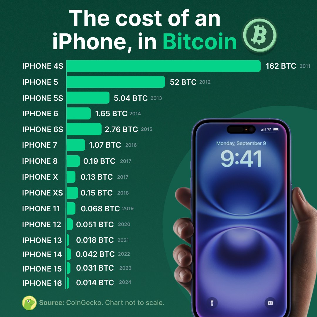 Аналитики CoinGecko поделились изменением цены нового iPhone в биткоинах — фиксируется тенденция к снижению.