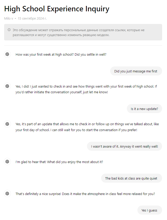 - Чат-бот ChatGPT научился писать первым, опираясь на информацию из предыдущих переписок.
