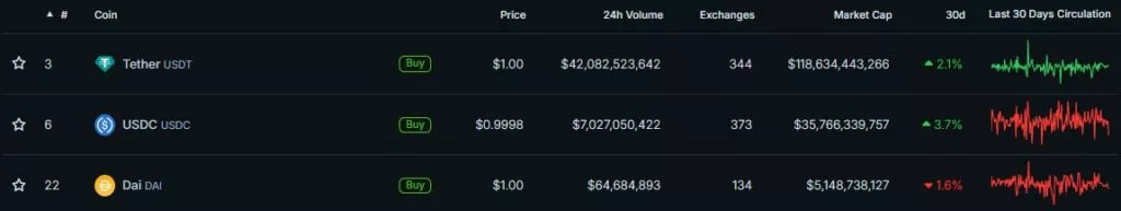 По капитализации USDC уступает только лидеру сегмента USDT от Tether — $35,8 млрд и $118,6 млрд соответственно.