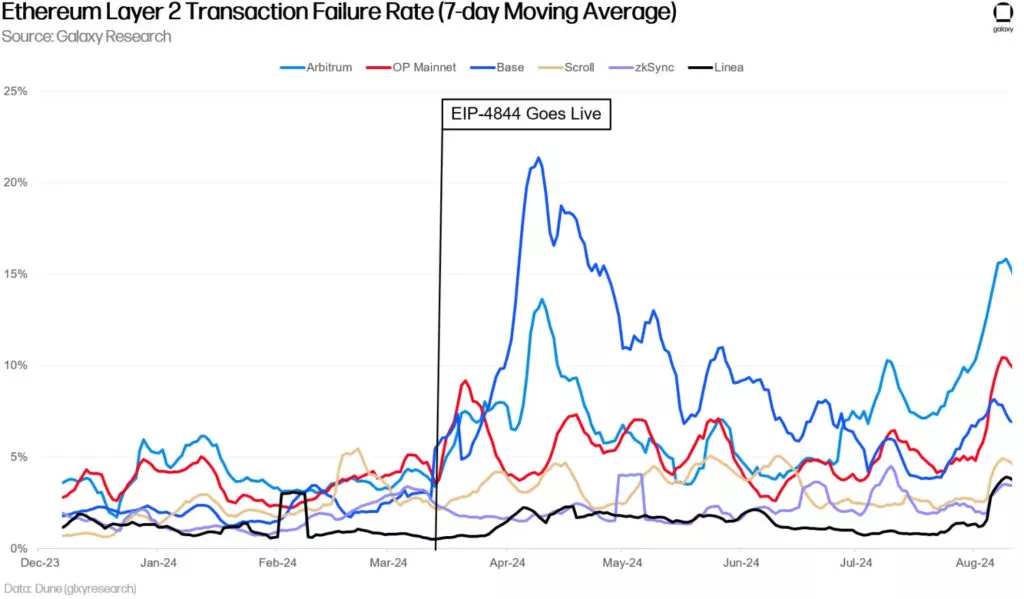 Dencun увеличил число неудачных транзакций в L2-сетях на Ethereum