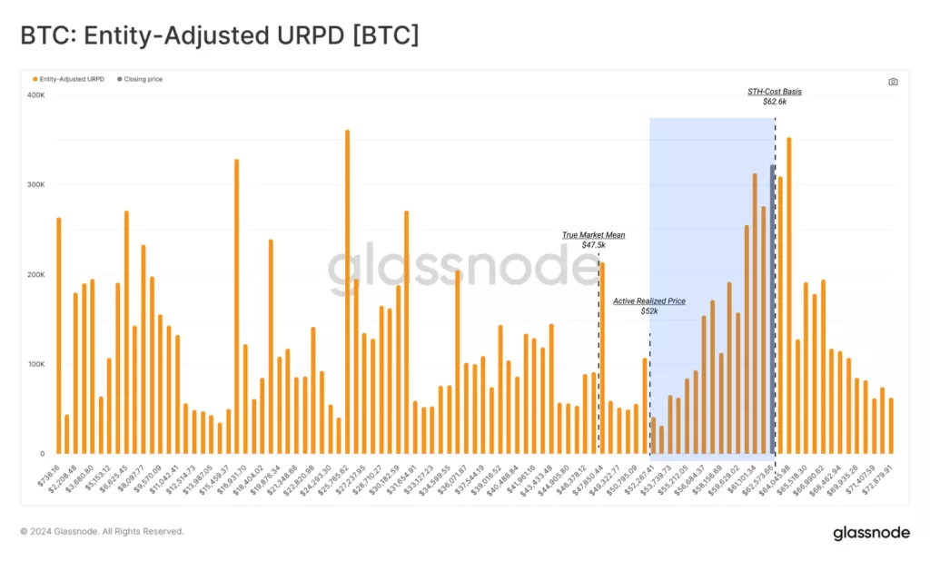 «Это рисует картину рынка „хрупкой почвы под ногами” с большим объемом предложения, которое будет чувствительно к следующему крупному движению котировок», — прокомментировали в Glassnode.