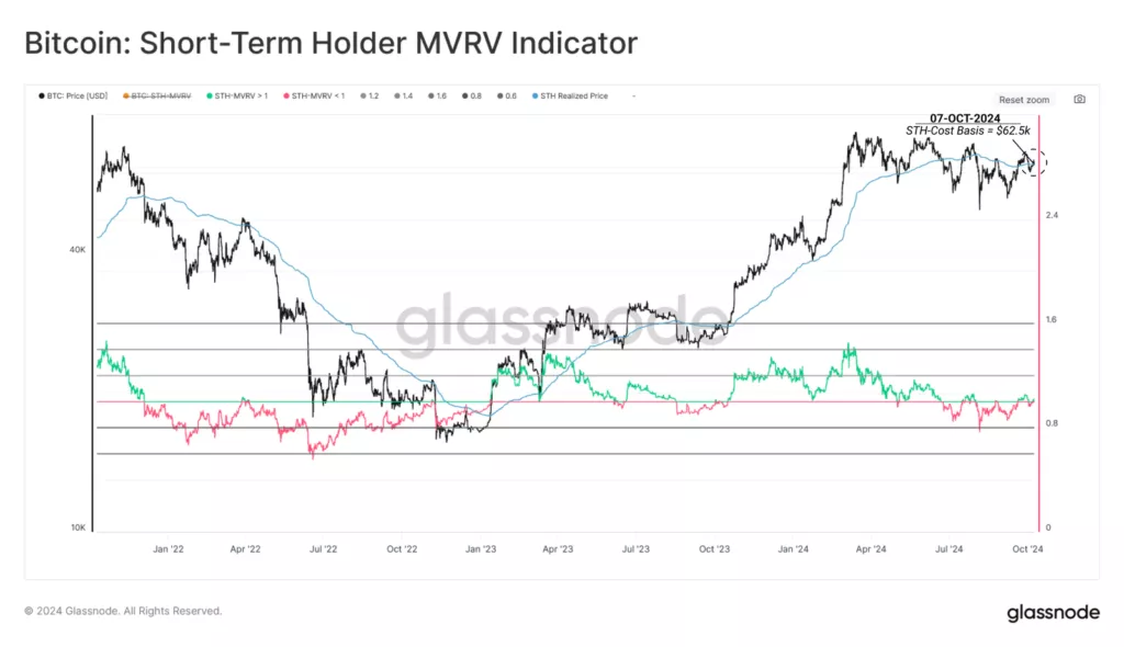 Аналитики отметили, что после одной из крупнейших с 2022 года суточных коррекций 1 октября в 3,7% биткоин опустился до $60 000. В дальнейшем быкам удалось вернуть курс к $62 500, что соответствует средней стоимости приобретения монет краткосрочными инвесторами.