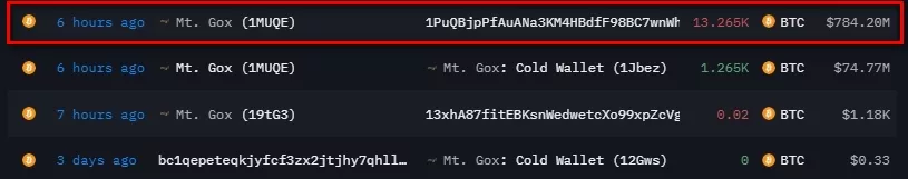 Обанкротившаяся криптобиржа Mt.Gox отправила на неизвестный адрес очередные 13 265 BTC ($784 млн). Это следует из данных Arkham.