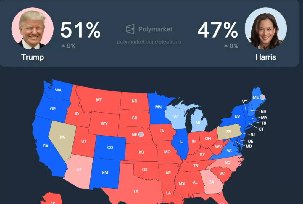 Согласно последним данным, Дональд Трамп на 4% опережает Камалу Харрис в контексте прогнозирования победителя на предстоящих выборах в США: