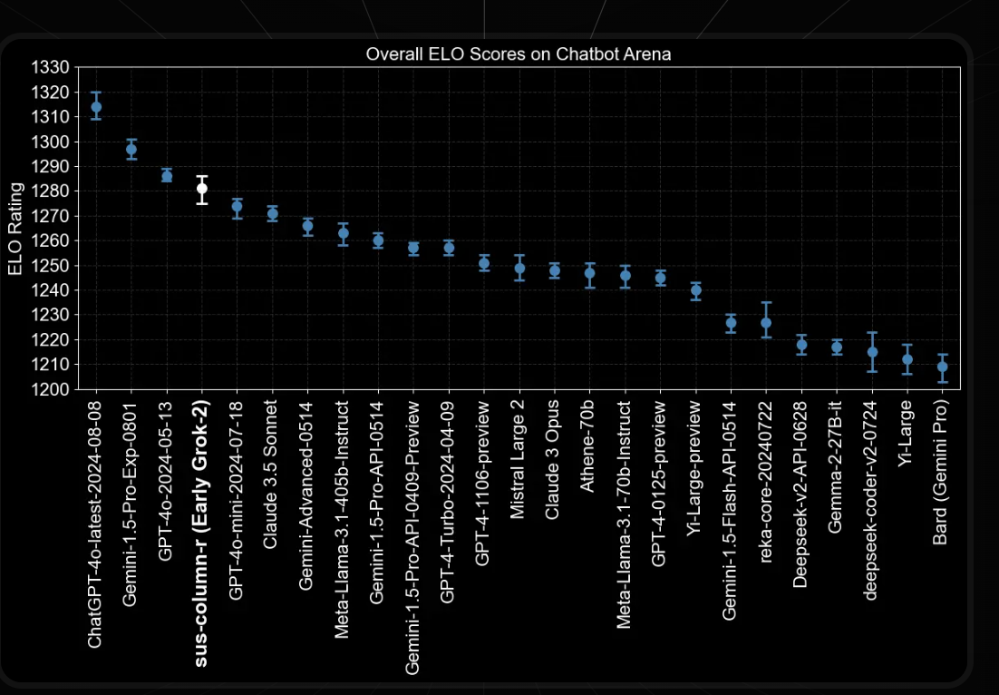 Grok-2 обошел Claude и GPT-4 в тестах популярного бенчмарка LMSYS, уступив GPT-4o и Gemini 1.5 Pro.